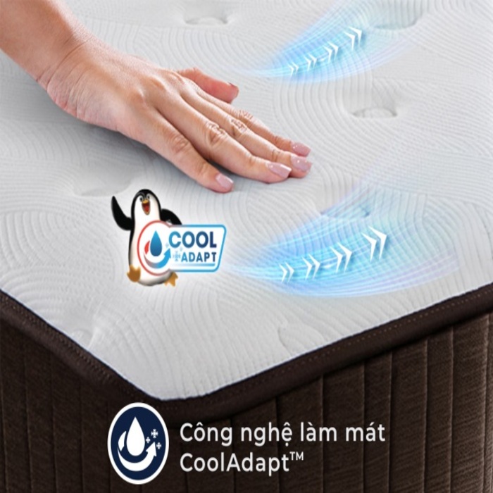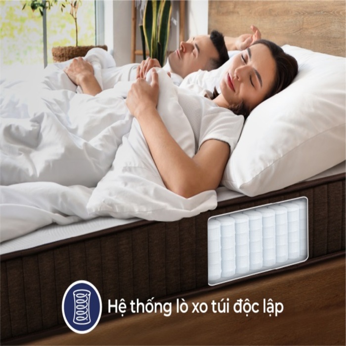 Hệ thống lò xo liên kết dày cùng bề mặt nệm bằng phẳng là thiết kế hoàn hảo giúp nâng đỡ hệ cơ xương ở trạng thái thả lỏng tự nhiên.